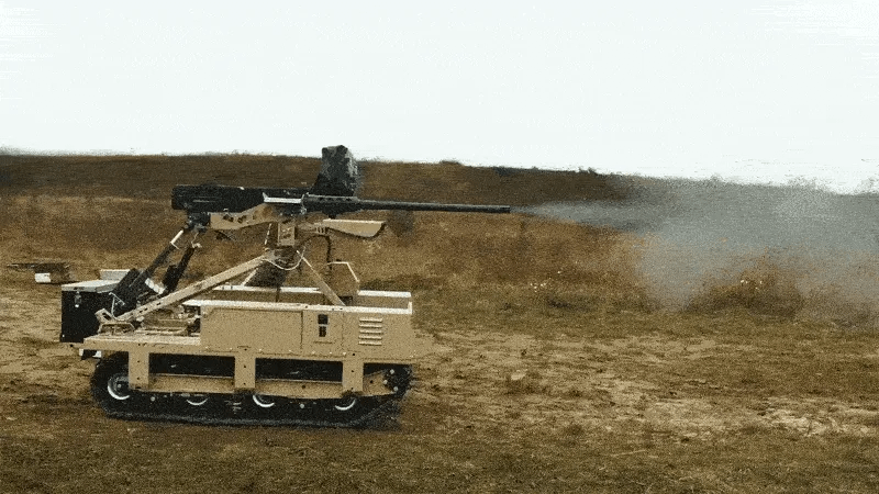 The UGV, equipped with thermal night vision and armed with a remotely operated M2 .50-caliber machine gun, was reportedly on a combat trial—crawling around the battlefield at nighttime for testing purposes—when an MT-LB rolled toward it on the same road.