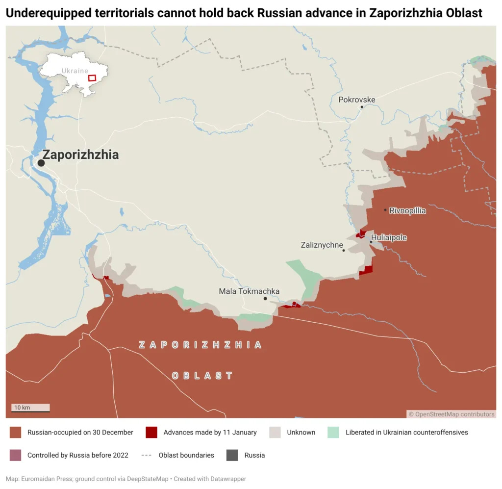 In late December, the Ukrainian 17th Army Corps ordered the 108th Territorial Defense Brigade, holding positions around Mala Tokmachka, 20 km west of Huliaipole, to form a new combat group under the command of the 225th Assault Regiment.
