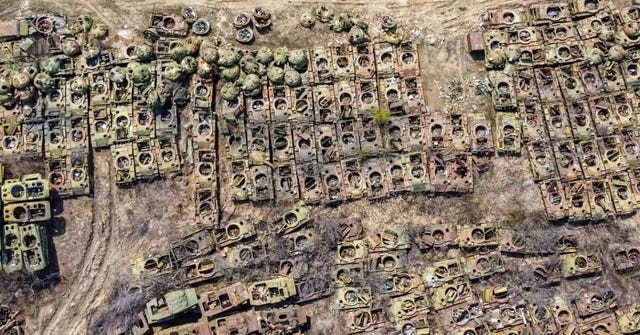 The point is: much if not most of what is left in Russian storage yards is useless scrap metal. As the wider war grinds toward its fourth year, the process of de-mechanization that began in late 2022 will accelerate—a lot.