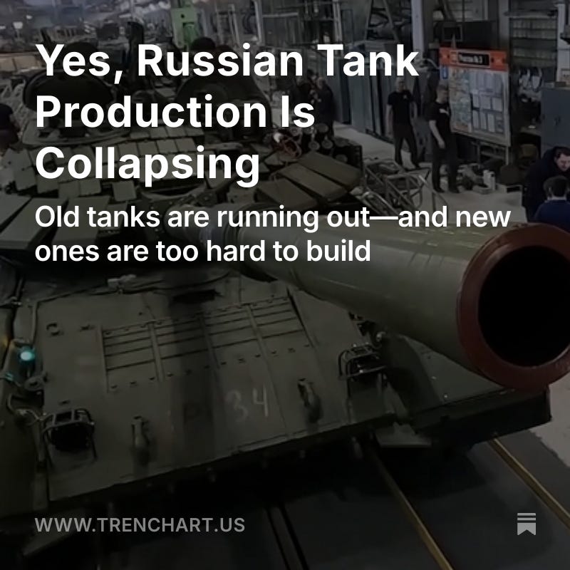 UralVagonZavod has two production lines. Each is capable of 20 T-90M tanks per month. Due to shortages especially of the optical gunsights, they have been building incomplete T-90Ms for the past year and a half. Russia added another factory that had been building BMP variants with an additional two lines expected to cap out at 20 per month each. The top end off they had unlimited parts therefor is 80 per month. Maybe they are cranking out 80 incomplete T-90Ms that are waiting somewhere for parts, but that would no longer be converted older tanks. It is more likely to be a much lower number with some using newly developed Russian-built sights (which they have been working on for years to eliminate that dependency).
