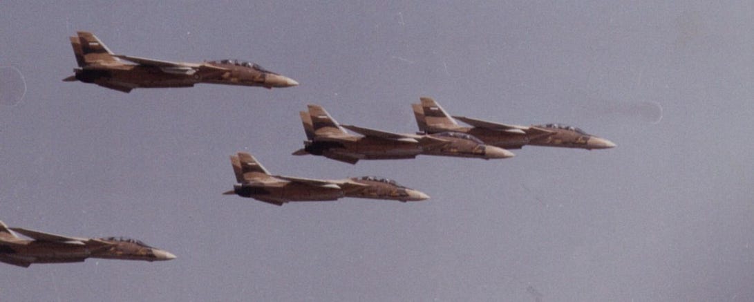The crew of the Tomcat in question consisted of All-e-Agha and 1st Lt. Mohammad Rostampour. They had been airborne for hours and had survived at least one engagement with another formation of Iraqi MiGs earlier the same day. They focused their attention northward as the MiG-23s approached from the west.
