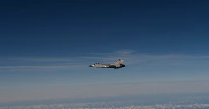 Three Russian air force Mikoyan MiG-31 interceptors flew through Estonian air space for 12 minutes on Friday. Apparently, it wasn’t until the twin-engine, supersonic jets—some of which can carry long-range Kinzhal hypersonic missiles—were in international air space over the Baltic Sea that NATO warplanes finally formed up on the intruders.