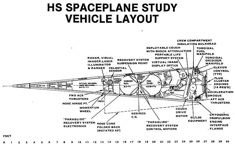 Because this was not (intentionally) a kamikaze vehicle, provision was made for a soft landing and recovery, presumably at sea, although the plan was for a folding parawing akin to the Rogallo Wing designed for Gemini capsule recoveries. The aerospike engine had enough reserve power for considerable cross-range maneuvering, which increased recovery options.